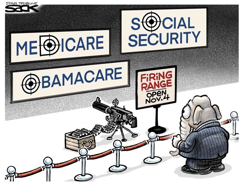 Here’s a nice entry to the topic, because Ann Telnaes mocks the President’s words and intentions.