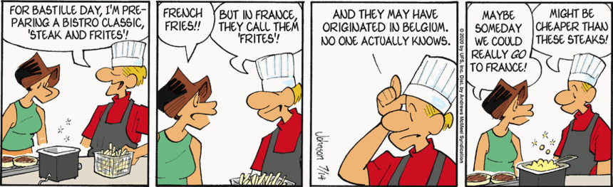 Yes, it’s Bastille Day, and Arlo & Janis are celebrating in their backyard, which is where everyone celebrates these days.