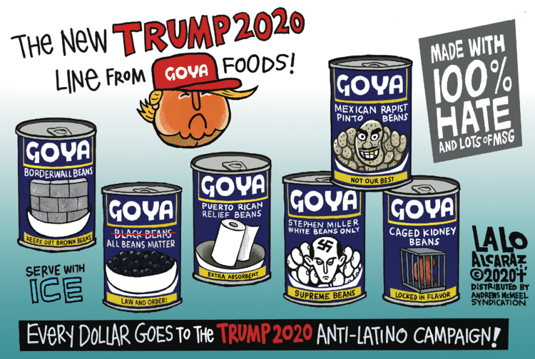 Lalo Alcaraz replies to the CEO of Goya Foods, who could have attended the party in the Rose Garden without stepping up to praise the bigot who has spent three years insulting and abusing the Hispanic people who are Goya’s customer base.