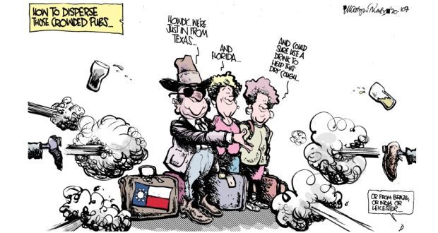 I’m also not entirely clear on how you would get around the EU’s current restrictions to fulfill Martyn Turner’s recommendation for easing the crowding in Irish pubs, but in any case the whole world is watching, and, apparently, laughing.