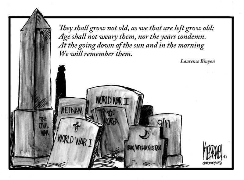 You can readily find those saluting children and weeping eagles on your own, but I’m going to expand upon Kearney’s theme of remembrance.