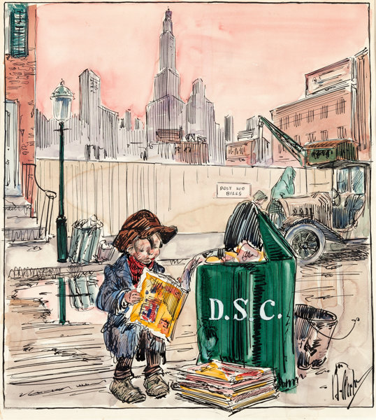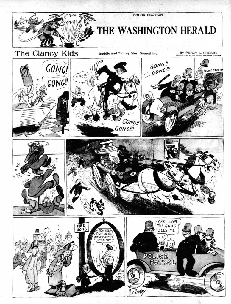 Skip to commentsPercy Crosby was born in 1891 and was working and cartooning for newspapers before he was out of his teens. His twenties saw him succeed in contributing cartoons and comic strips to magazines and newspapers. WWI interrupted the career. After The War to End All Wars Crosby reestablished himself as a cartoonist and illustrator. One of his specialty subjects being children of the poor and working classes.
