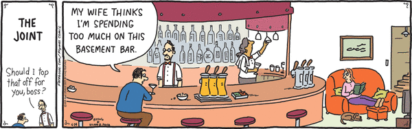 Quick one: This Rhymes With Orange (KFS) reminded me of a couple I knew who were customizing an expensive condo with touches that included an elaborate basement man cave with a bar, until she began having an affair with the builder, threw out the husband and revised the wet bar into a ballet barre for her daughters.