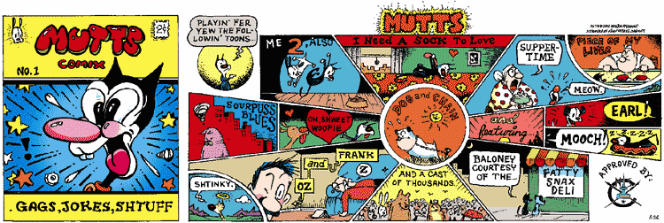 Finally, for an example of an homage, we turn to Mutts (KFS), which has a tradition of homages to album covers:
