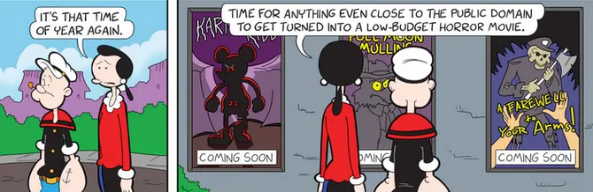 Randy Milholland, a student of Popeye history and the Popeye Sunday cartoonist, takes on a public domain aspect of modern “creators.”