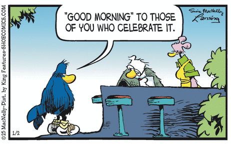 I liked Shoe‘s rephrasing of the various end of year holiday greetings that had just past.