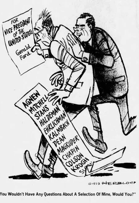 MacNelly saw the appointment of Ford, generally considered a moderate, as an attempt by Nixon to rebuild his image.