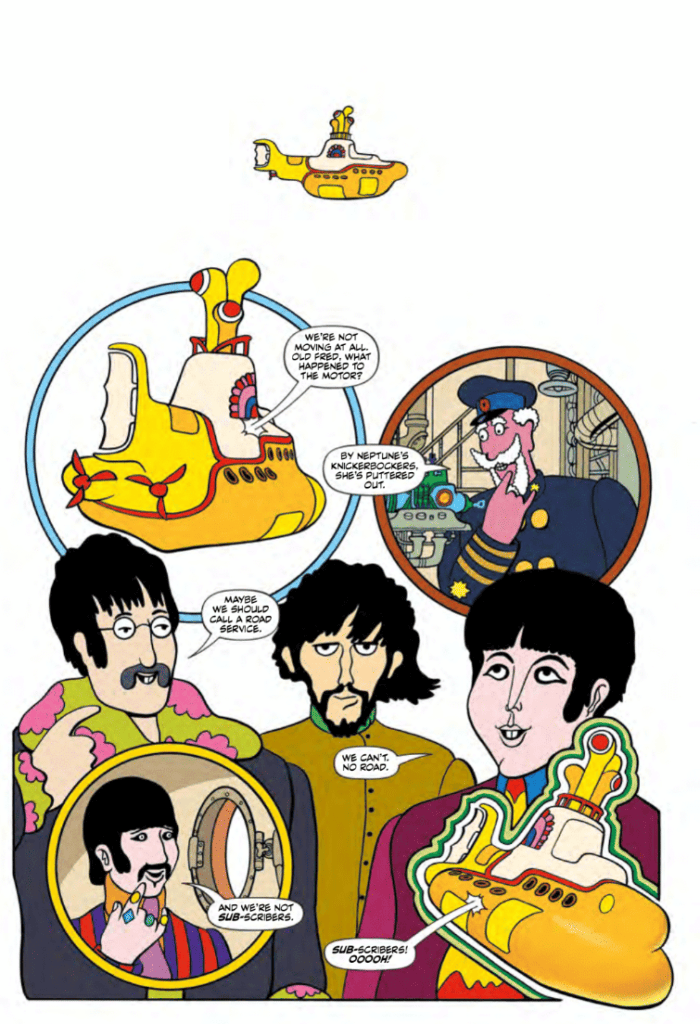 Mr. Morrison, a co-founder of Bongo Comics, whose titles include “The Simpsons,” and the editor of Mad Magazine, has been working on the project for 20 years. Just before “Yellow Submarine” turned 30, he began writing and drawing an adaptation of the animated film for Dark Horse Comics. “I got about 25 pages done before they called me and asked me to stop because the deal fell through,” he said. Was it the work of the Blue Meanies, the music-hating creatures from the film?