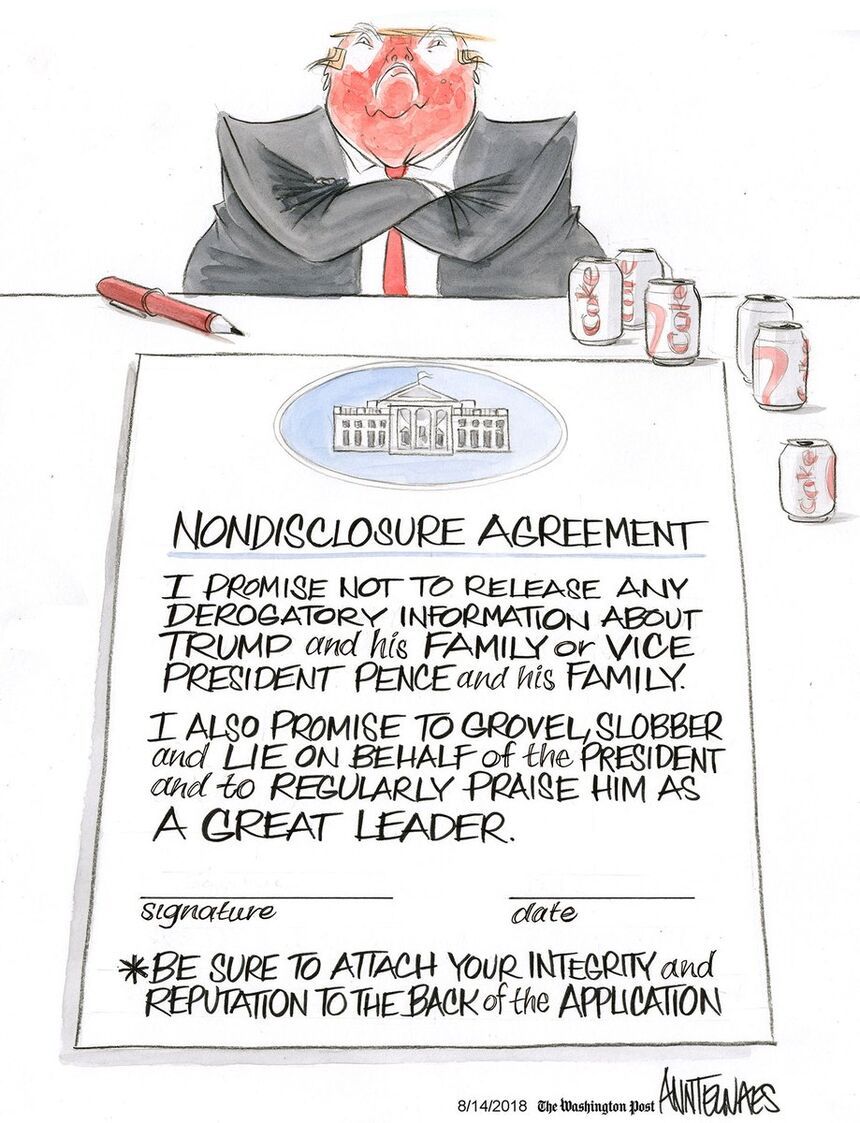 As adults, the bully is sheltered by a crowd of sycophants and collaborators who will gather ’round to protect him from abuse when, as in this Ann Telnaes cartoon, he’s been caught with his pants down.