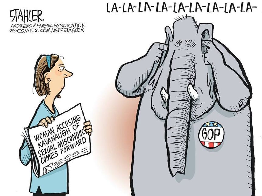 The #MeToo movement has emboldened women and you slime them at your peril, which puts the GOP more in the position Jeff Stahler suggests: They’d like Kavanaugh on the bench for the next session, which begins in October.
