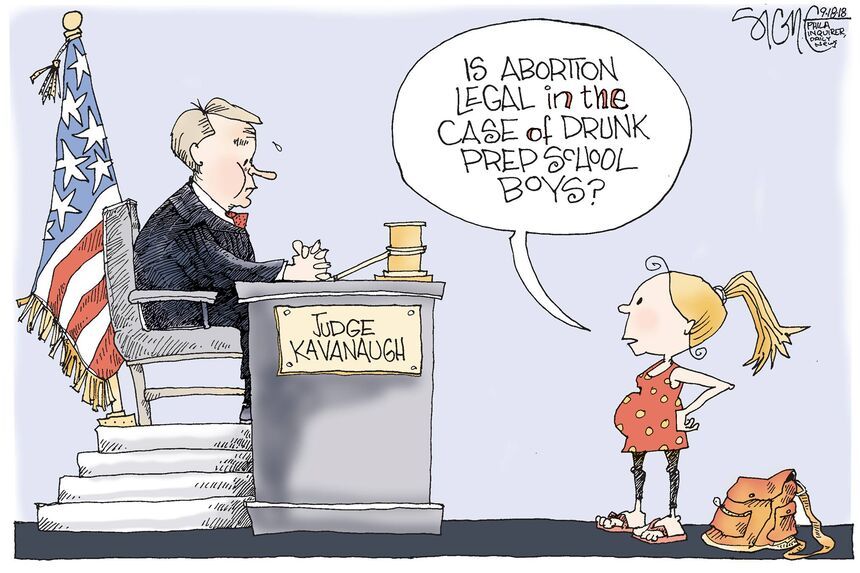 And Signe Wilkinson poses a question that I find interesting in terms of Kavanaugh’s potential impact on Roe v Wade, but even more compelling in view of his problematic dissent in the case of a pregnant 17-year-old immigrant who sought an abortion.