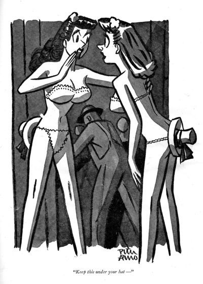 But it also made me think of people wearing hats on their bottoms which made me think of this Peter Arno classic. Arno was a dirty old man, but he was a very inventive, very funny dirty old man, and you can find a picture of him hard at work in this collection of photographs by Stanley Kubrick, so there’s yet another distraction from whatever you should be doing instead. (The article’s in Greek but the photos aren’t.)