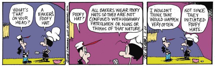 Skip to commentsToday’s Agnes is just plain silly, but it made me laugh because, I thought, there probably is a reason for the poofy hats, only I just looked it up and the reason, as I kind of suspected, is a combination of tradition, pretension and dubious folklore.