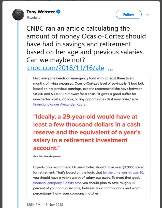 And the connection here being that I am just barely old enough to be Alexandria Ocasio-Cortez’s grandfather and it really pisses me off to see fatcats who grew up on silk pillows berate her for being a normal person with normal resources.