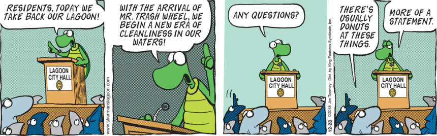 Sherman’s Lagoon speaks truth today, though it’s more about courting the press than it is about pleasing the public.