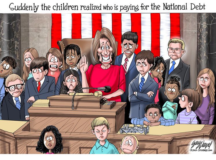1. I think you might be misreading Varvel’s cartoon. I’ve been following Varvel for a few years and my take, based on his past performance, is the old ‘tax and spend’ trope that Republicans glued to Democrats. So Pelosi the Democrat is in and suddenly deficits matter again to the Republicans.