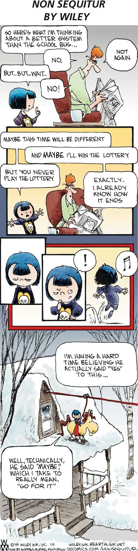 I didn’t laugh at Danae in today’s Non Sequitur because, at her age, I had fantasies of riding a horse to school.