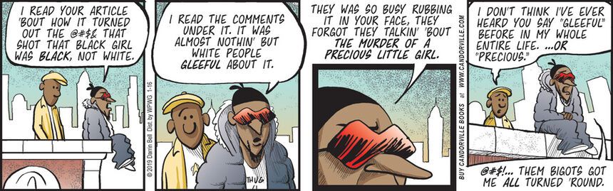 Skip to commentsI’ll let today’s Candorville set the tone, because it’s the most self-critical of today’s batch of cartoons, plus I’m always pleased whenever Clyde becomes the voice of reason.