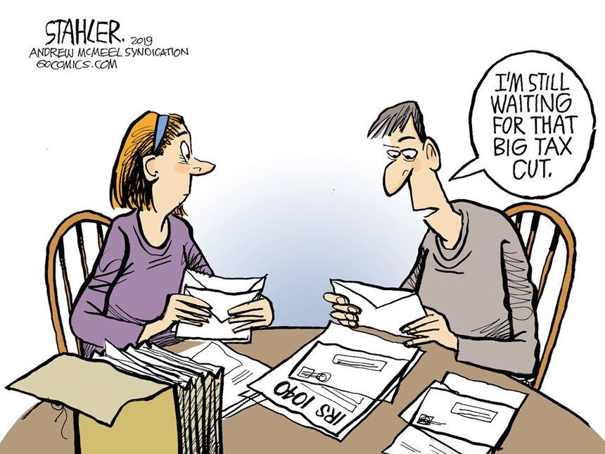 Meanwhile, Jeff Stahler illustrates something that just popped up on my personal Facebook feed, which is that a well-organized, mathematically gifted friend sat down to do her income tax and discovered what we’d been warned about months ago: