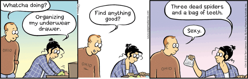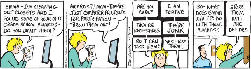 Whether that has to do with “New Year’s Resolutions” or simply a two-week period when you might be off work and liable to ponder such things is irrelevant, but I would note the connection between the sentimental things in both strips and those aforementioned floppies.
