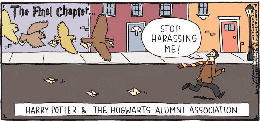 However, I have not found a way to filter my email to avoid their electronic pestering without also blowing off messages from the few schoolmates I care about and who have not yet been listed among the dead in the back of the alumni magazine.