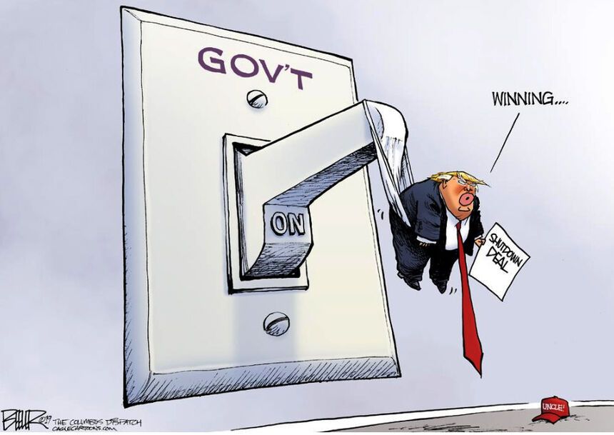 Skip to commentsPolitics are currently in a state of suspension, as Nate Beeler demonstrates. There are a lot of shutdown cartoons still out there, a day late and a dollar short, while others have gone to more general, less time-critical commentary while things sort themselves out.