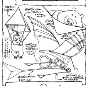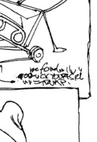 The seemingly vulgar sentiment, which appears to begin with “We fondly say go …”, can be seen scribbled in the bottom right corner of the middle panel in Non Sequitur, by cartoonist Wiley Miller.