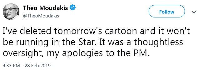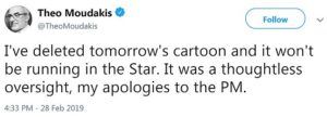 Toronto Star editorial cartoonist Theo Moudakis has taken down a cartoon and