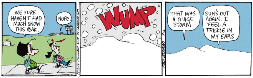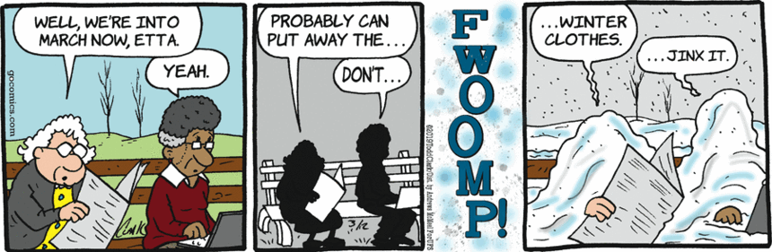 Genuinely had this conversation with someone the other day: Snow was predicted and I commented that it hadn’t seemed like such a rough winter and I was told to shut up and keep that sort of jinxy talk to myself.
