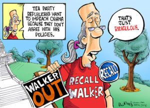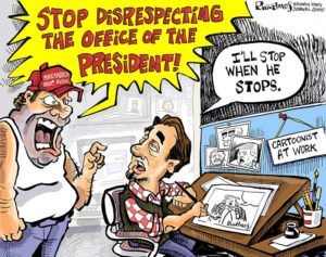 Around two hours, once I have the idea. Getting the idea can be the hard part; figuring out how you’re going to say what you want to say is really the hardest part about drawing a political cartoon. I think I’ve been drawing for so long that once the idea is formulated, I rarely ever get stuck on the drawing part. It’s the creative process where you’re figuring out how it works that often trips me up.