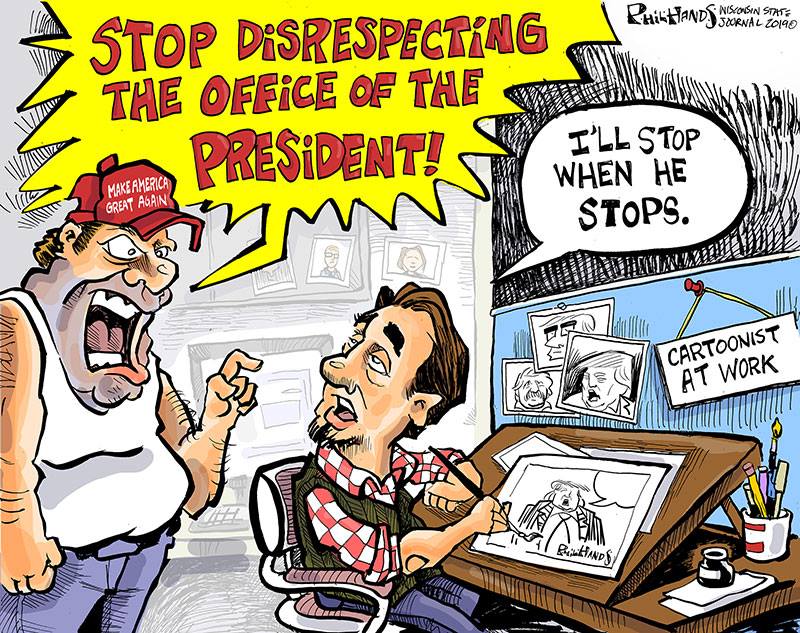 Wisconsin State Journal cartoonist Phil Hands talks to the Gateway Journalism Review about “how he chooses the topics for his cartoons, how he first got into drawing cartoons in high school and the feedback he draws from people across the country.”
