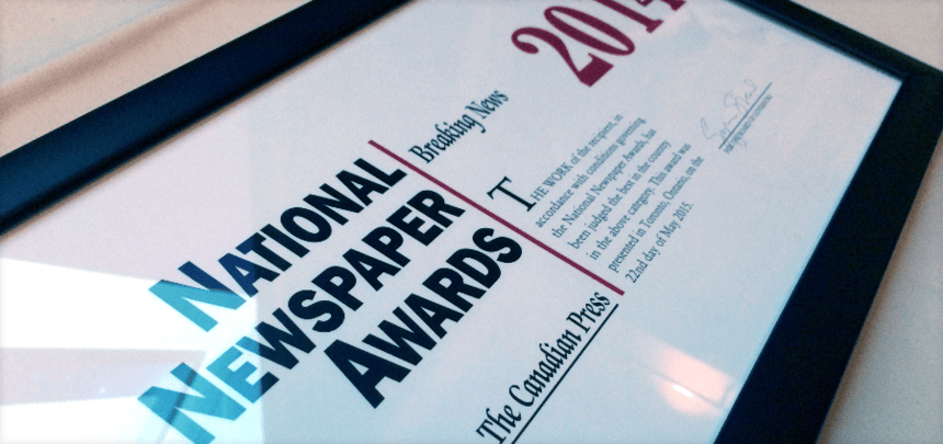 A couple National Newspaper Awards notes:
