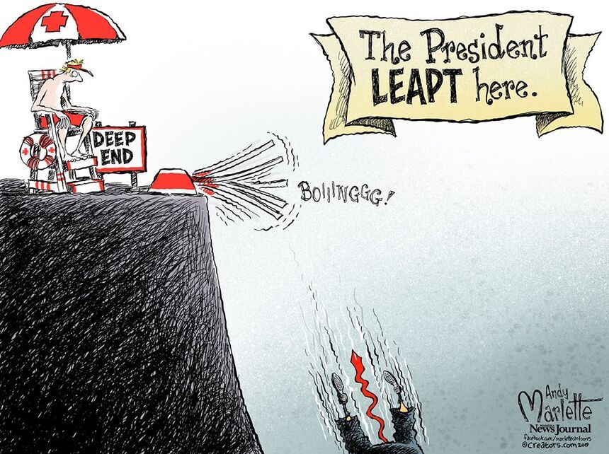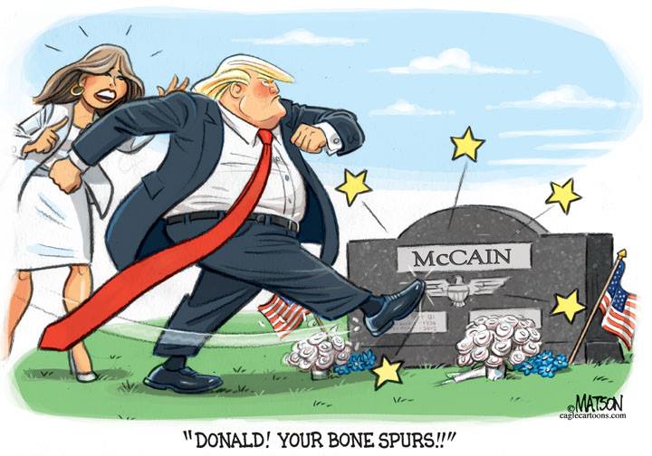 There have been a number of cartoons with Trump disrespecting McCain’s tombstone, but RJ Matson brings up the draft-dodging aspect.