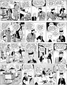 so here’s Milton Caniff‘s first daily (October 22, 1934) and Sunday (December 9, 1934) strips.