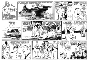 The first Buz Sawyer Sunday, featuring Roscoe Sweeney, appeared November 28, 1943