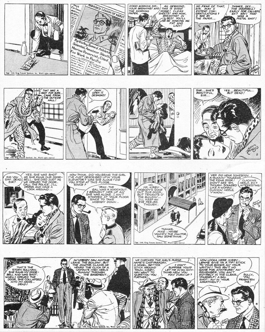 Rip Kirby was Raymond’s return to comics after WWII, with the door opening on March 4, 1946.