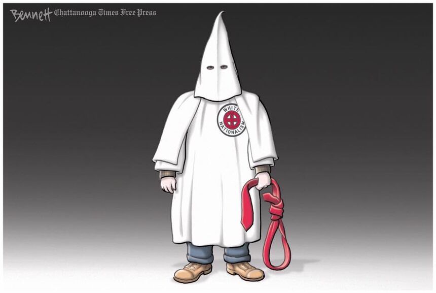 Facebook’s newly announced effort to eliminate white supremacist posts didn’t take long to hit a snag, as Clay Bennett had this cartoon automatically taken down.