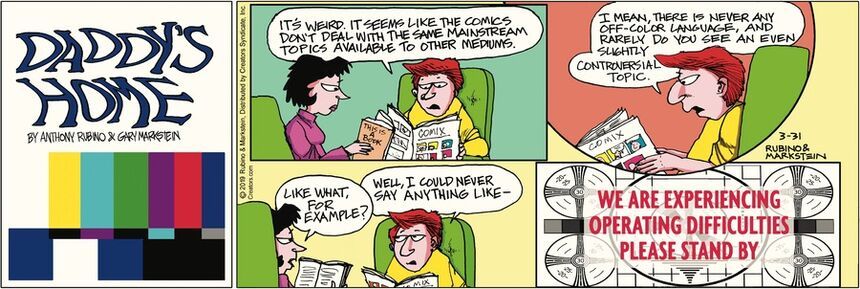 As for “Daddy’s Home,” I know we had “trouble slides” when I worked in television some 40 years ago, but I’m not sure the last time I’ve seen one. I think they’ve got the technology down now to the point where they are either up and running or blown off the air completely.