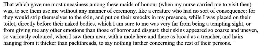 The prospect of seeing them in even greater detail reminds me of when Gulliver visited Brobdingnag, where the scale of the giants made even ones who should be cute and desirable seem repulsive: