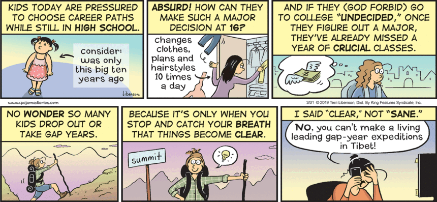 And I think leading gap-year experiences in Tibet sounds like a pretty cool idea, except that you might make so much money that you’d never end up getting that sheepskin.