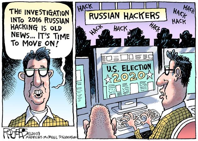 Rob Rogers charges that a lot of “It’s over, let’s move on” messages are coming from the Russian troll factories, and you’d have to be pretty foolish to disagree. We know they’re already working on the 2020 elections.