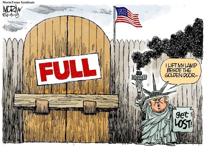 Jim Morin offers a comparatively calm assessment of Dear Leader’s shocking ex cathedra announcement that America is no longer a beacon of freedom and liberty.
