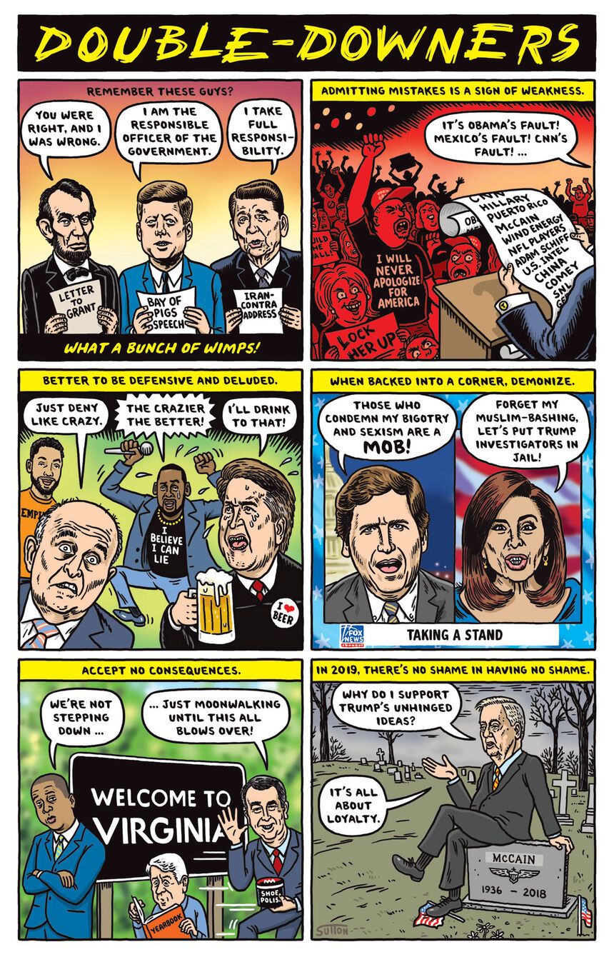 Ward Sutton is a little too young to remember JFK, though he’s old enough to remember Reagan, but he’s got a solid grasp of how things have transmuted over the years, if not from gold to lead, at least from a good-though-fallible system to a greatly lesser, far more fault-ridden one, all the worse for our collective failure to take responsibility.