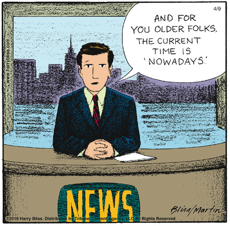 So Harry Bliss can snicker over old folks who talk about “Nowadays” and reminisce about the Good Old Days, but it’s a fraught and touchy topic.