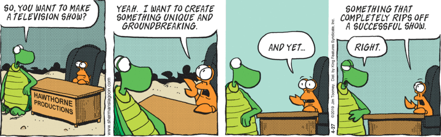 Skip to commentsBefore we get into politics, let’s get into Sherman’s Lagoon, because this new story arc looks like fun, and, besides, separation of popular TV from national politics is pretty unclear anyway.