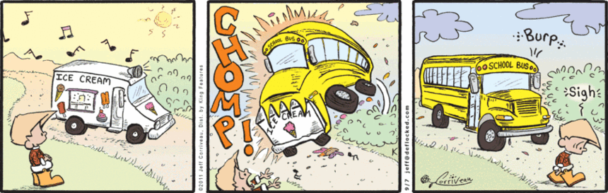 School gags will be more like workplace gags, and cartoonists who continue to do “end of a long summer” or “end of a long school year” gags will be outed as old duffers.