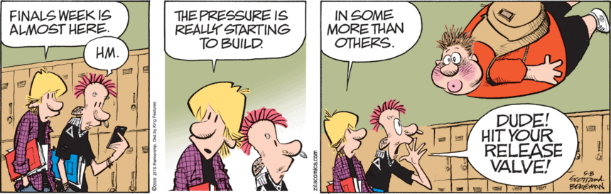 Skip to commentsEasy warm-up to start: Today’s Zits happens to come the day after 1A had a program about alternative school calendars, and also as I’m realizing my kid-reporters in Colorado will be out of school in about three weeks, a granddaughter will be graduating in four and some kids I work with in New York won’t be out until mid-June.