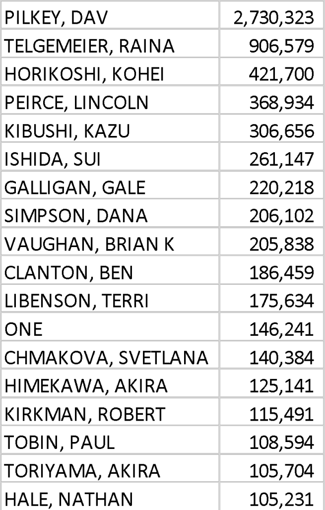the BookScan numbers for the 2018 Graphic Novel section.