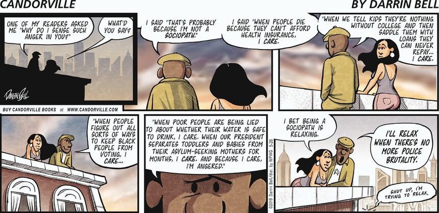Really, if you’re not angry, and scared, and fed up with the current state of things, he’s right: You’re a sociopath.
