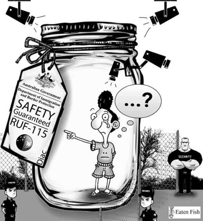 Go elevate yourself with Eaten Fish’s cartoons and text as he tells the story of his time in an Australian refugee camp and how the Cartoonists’ Rights Network International and its members and allies helped to free him and bring him to safety in Norway.
